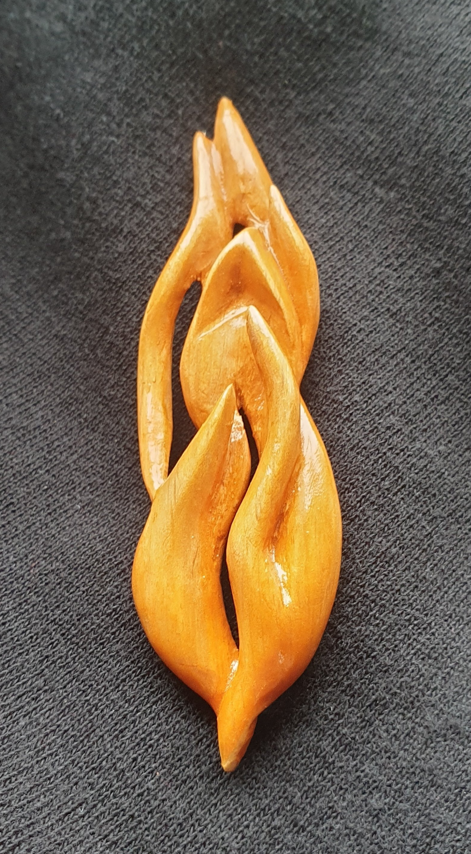 This pendant in reddish and bluish tones symbolizes the connection between the elements "fire & water". Like all our works of art, the pendant is handcrafted from a single piece of wood and is undoubtedly a filigree unique item.