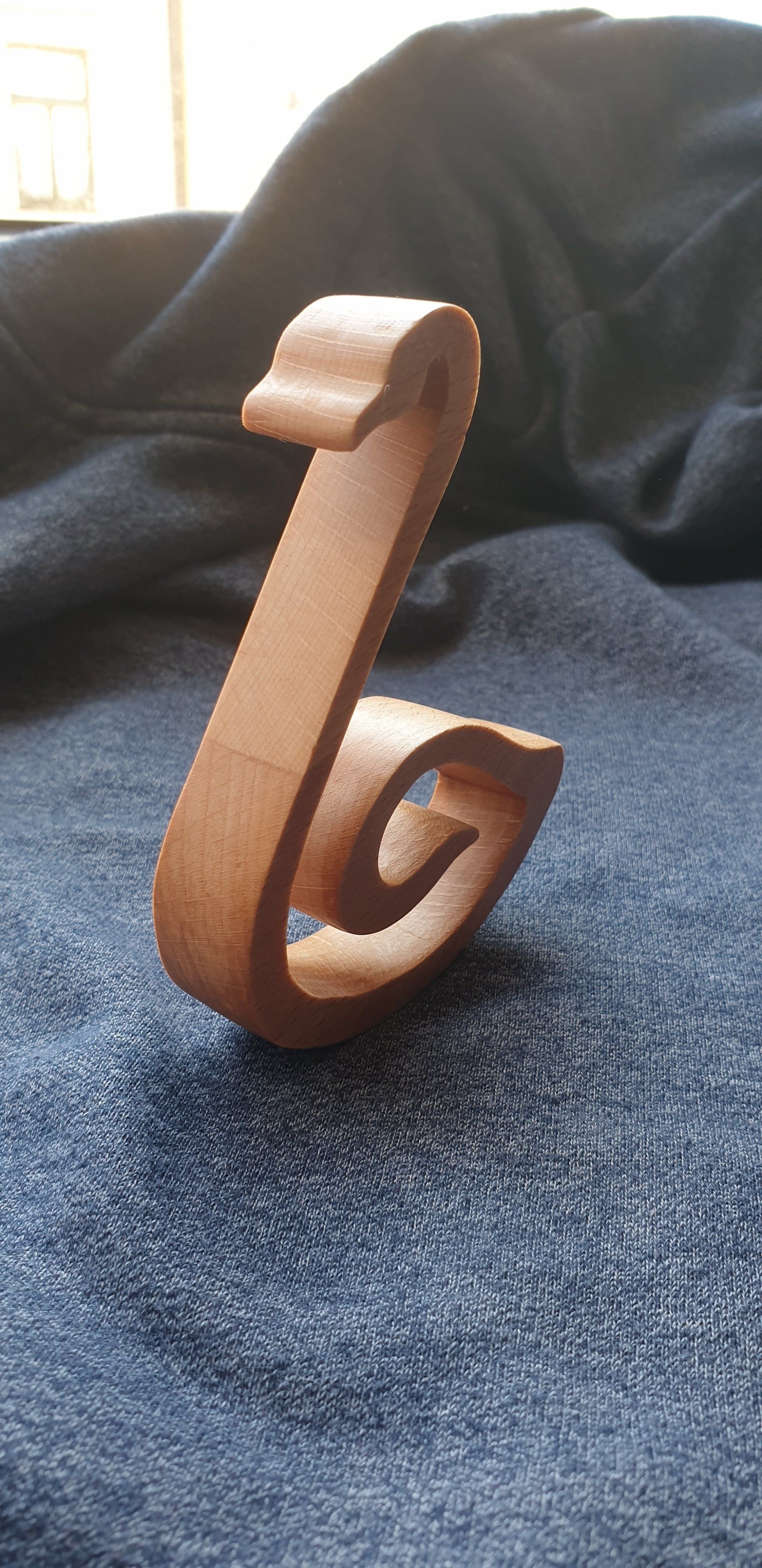 It was handcrafted from a piece of wood and glazed with a wood stain.
