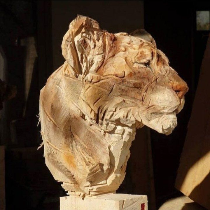 Comme toutes nos pièces, cette œuvre d'art a été réalisée à partir d'un bloc de bois massif. D'abord avec une tronçonneuse, puis à la main, Dmitrii Sipchenko a tenté d'exprimer les caractéristiques de cet animal majestueux en bois sans gabarit.